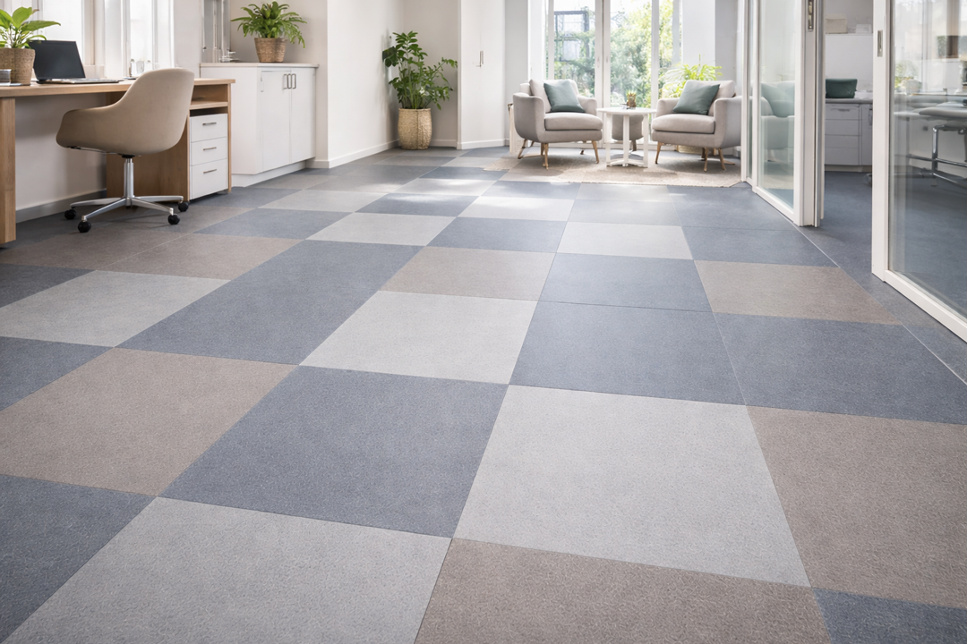 Nahtarm verlegt, hygienisch und ideal für grosse Flächen wie Büros, Praxen oder Schulen.