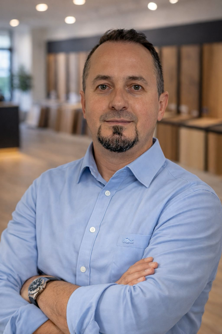 Als gelernter Bodenleger bringt Labinot Kryeziu langjährige Erfahrung in der Verlegung hochwertiger Bodenbeläge mit.